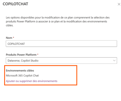 Une fois validé, attendez quelques minutes que votre plan se créer. Ce dernier sera rattacher à un environnement de développement power platform, par défaut Microsoft 365 Copilot Chat. Vous pouvez modifier ce dernier